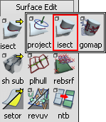 デフォルトでは、Intersectツールは、サーフェスをトリミングできるように各サーフェスにカーブオンサーフェスを作成します。