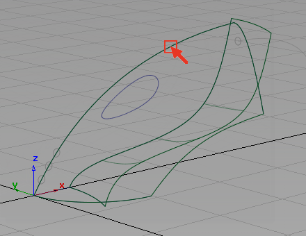 強調表示されているカーブは、2つのカーブオンサーフェスです。カーブオンサーフェスが 1 つしかないように見えますが、2 本のカーブオンサーフェスが同じ場所に存在します。1 つは上部のサーフェスに、もう 1 つは下部のサーフェスにあります。