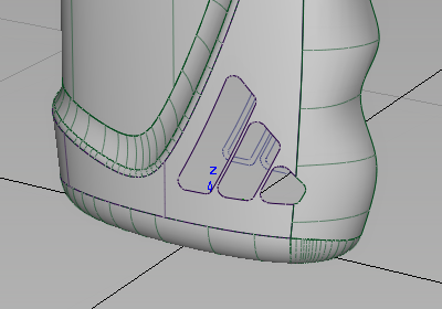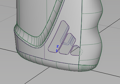 オフセット サーフェスを使用してロゴ サーフェスを作成します。トリミングをしてロゴのアウトラインを作成し、Freeform Blend を使用してメイン サーフェスに滑らかに結合させます。