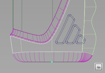 - Goをクリックします。投影するカーブの選択を要求するプロンプトが表示されます。ロゴのディテールには多数のカーブがあるので、セレクションボックスをドラックしてすべてのカーブを囲みます。
