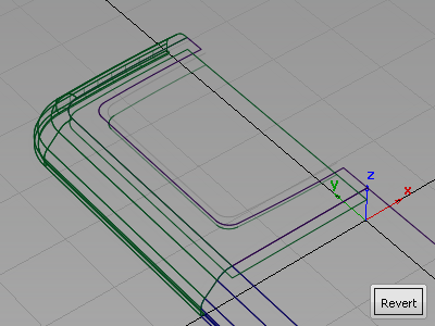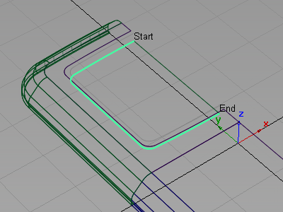 ケースのアウトラインをオフセットして、画面のカーブを作成します。次に正面フェースにそれを投影し、カーブオンサーフェスを作成しますこのカーブオンサーフェスを表示画面用の開口部をトリミングするのに使用します。
