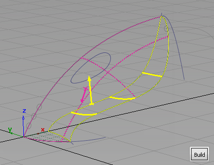 サーフェスが選択されて黄色で強調表示され、Build ボタンがビューの右下隅に表示されます。