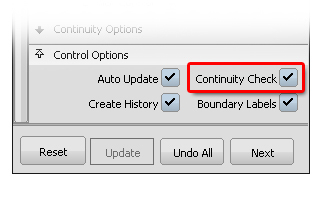Alternatively, Evaluate > Continuity > Surface Continuity can be used to check a specific boundary. This tool has more options for displaying detailed information: