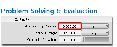 If your model will be used for prototyping or production, it is essential that you select a tight set of tolerances before you start to create surfaces. The precise choice will depend on the product, the materials and the production process used, but a typical Maximum Gap Distance would be between 0.01mm and 0.001mm
