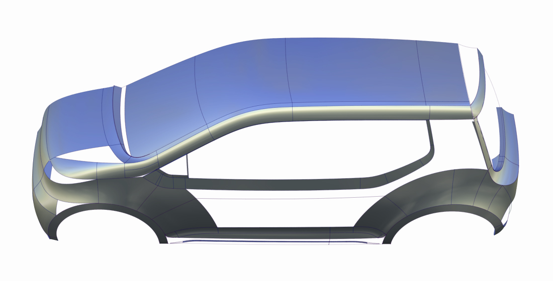 In this car example, the majority of the surface patches are 4-sided. It is often easiest to identify the obvious 4-sided regions and start modeling these first.