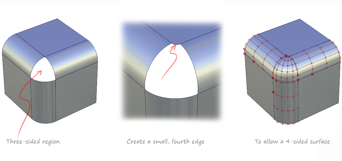 NURBS surfaces are inherently four-sided, as they are made up of the two directions, U and V.