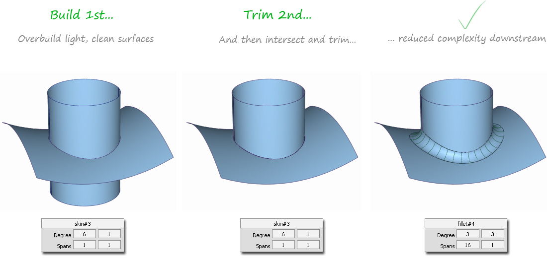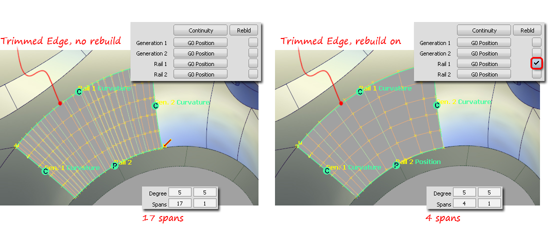 When overbuilding isn't a practical option, some tools offer a rebuild option that will improve the quality of the surface derived from the trimmed edge: