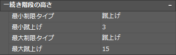 一続き階段の最小の高さを指定するには [最小制限タイプ]で[高さ]を選択し、[最小の高さ]に値を入力します。
