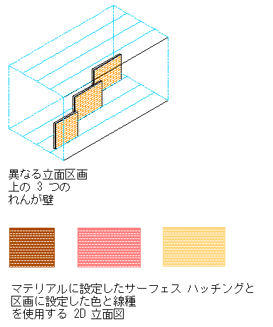 サーフェス ハッチングを割り当てた立面区画