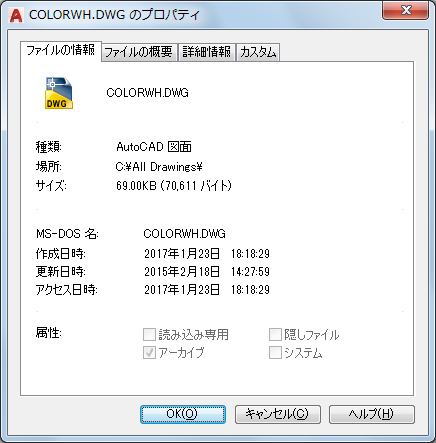 図面ファイルに関する読み込み専用の情報が表示されます。このデータは、オペレーティング システムから取得されます。