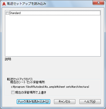 指定したシート セット データ ファイルから、選択した転送セットアップが読み込まれます。