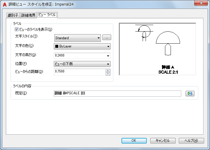 - 詳細ビュー ラベルに使用する文字スタイルを指定します。