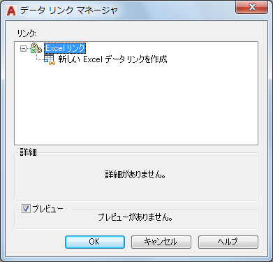 リンクされたデータが図面の表でどのようになるかのプレビューが表示されます。データ リンクを選択していないと、プレビューは表示されません。