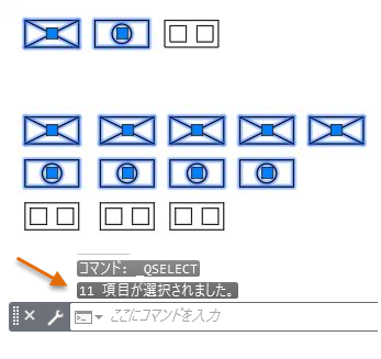 指定したブロックがハイライト表示されて新しい選択セットに含まれるとともに、指定したブロックの正確な数がコマンド ウィンドウに表示されます。