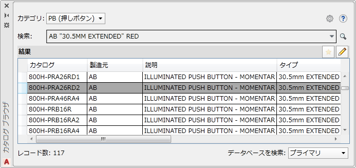 注: [アセンブリ リスト]の値で定義したサブアセンブリ項目は、検索結果に表示されません。サブアセンブリ項目を表示および編集するには、[カタログ ブラウザ]の編集モードを使用します。