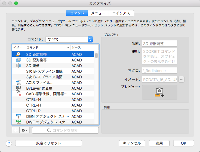 CUI[ユーザ インタフェースをカスタマイズ] (コマンド)
