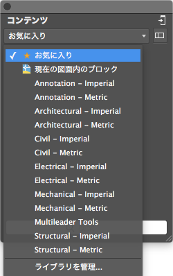 ライブラリに格納されているブロックにアクセスしたり、ライブラリにブロックを挿入することができます。