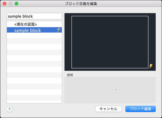 Displays the description of the selected block definition.