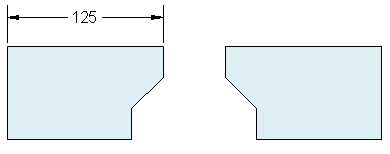 図面を、使用する作図単位と一致する実際のサイズで作成します。たとえば、次のオブジェクトは、長さがそれぞれ 125 フィートの 2 つの建物を表したり、ミリメートルで計測される機械部品の断面を表すことができます。