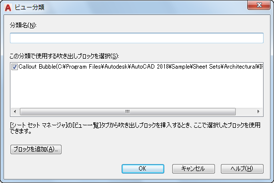 現在のビュー分類に適した吹き出しブロックを一覧表示できます。