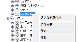 注意: リボン タブの除去操作を元に戻す方法はありません。間違ったリボン タブを除去してしまった場合は、[キャンセル]をクリックして[ユーザ インタフェースをカスタマイズ] (CUI)エディタを閉じることによって、変更が保存されないようにしてください。ただし、このようにすると、意図したものも含めすべての変更が元に戻されてしまいます。