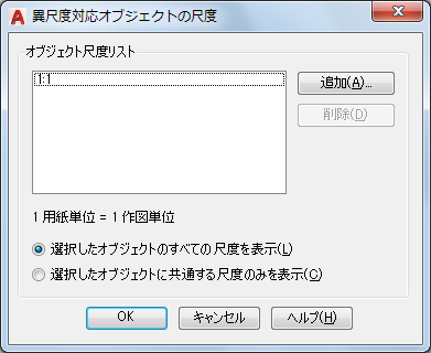 [オブジェクト尺度リスト]に、選択したオブジェクトに対応させるすべての尺度が表示されるように指定します。