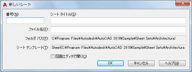シート番号を指定します。初めてシートを作成する場合は、シート番号を入力しないことをお勧めします。既定では、新しいシートの図面名とレイアウト名は、シート番号とシート タイトルを組み合わせたものになります。