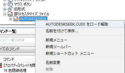 部分 CUIx ファイルがロード解除され、ツリーから除去されます。