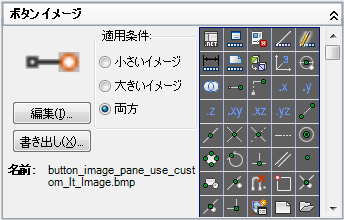 イメージ リストからイメージを選択すると、イメージ名が選択したコマンドの[小さいイメージ]、[大きいイメージ]、または[両方]のプロパティに割り当てられます。