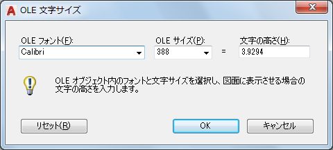 OLE オブジェクトのサイズを図面に挿入されたときのサイズにリセットします。