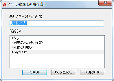 シート セット マネージャから[ページ設定を新規作成]ダイアログ ボックスを開いている場合、優先ページ設定ファイル内の名前の付いたページ設定のみが一覧表示されます。