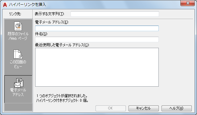 最近使用した電子メール アドレスがリストされ、ハイパーリンクに使用するアドレスを選択できます。