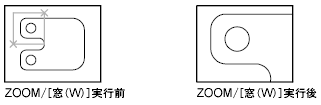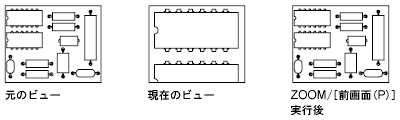 図面は常に再作図されるので、ZOOM/[図面全体(A)]オプションを割り込みモードで使用することはできません。