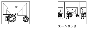 カメラでズーム インしたりズーム アウトするのと同じように、拡大ズームまたは縮小ズームすることにより、ビューの表示倍率を変更することができます。ZOOM[ズーム]コマンドを使用しても、図面内のオブジェクトの絶対サイズは変更されません。ビューの表示倍率のみが変更されます。