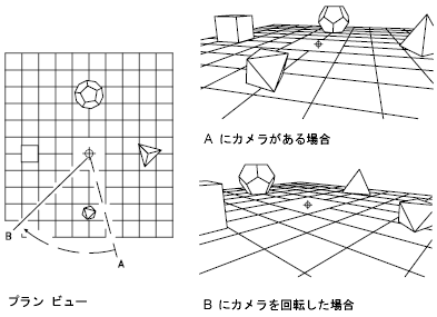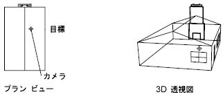 カメラと目標を使用して、平行投影ビューまたはパース ビューを定義します。