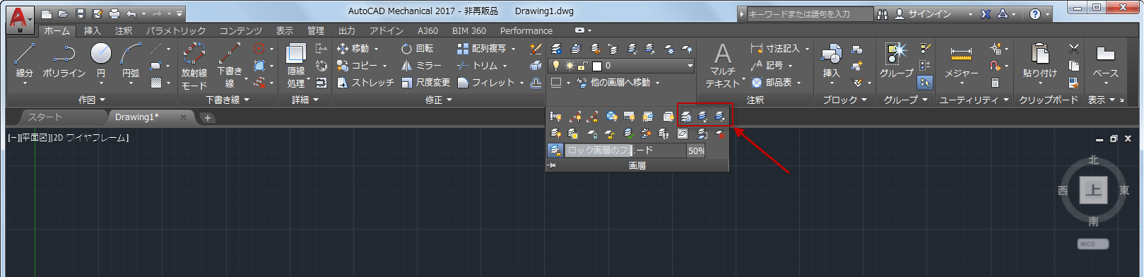 [ホーム]タブの[画層]パネルでは、[画層グループ管理]などの画層グループのツールや、AMLGISO コマンドおよび AMLGUNISO コマンドを使用できるようになりました。