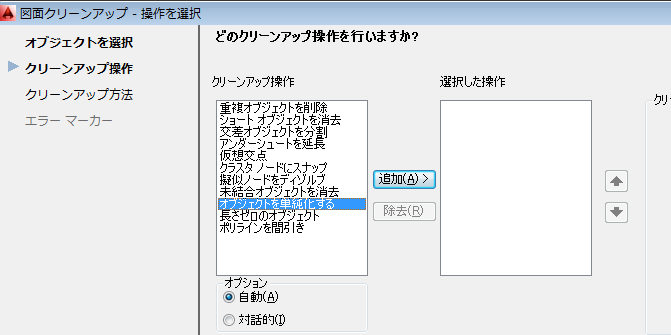 [クリーンアップ]図 17 で示されているように、[図面クリーンアップ]ダイアログ ボックスが開きます。