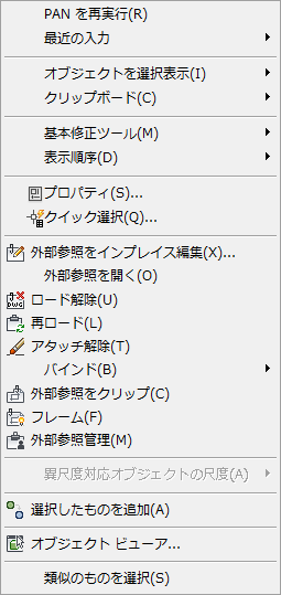 図 16: 外部参照オブジェクトのコンテキスト メニュー