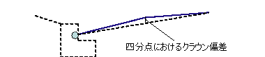 右フランジ ポイントと左フランジ ポイント間の距離は 4 つに分割され、2 つの四分点と 1 つのクラウン ポイントが決定されます。これらのポイントの標高は、各オフセットにおける現況基盤にオーバーレイ最小深さを加えることによって計算されます。
