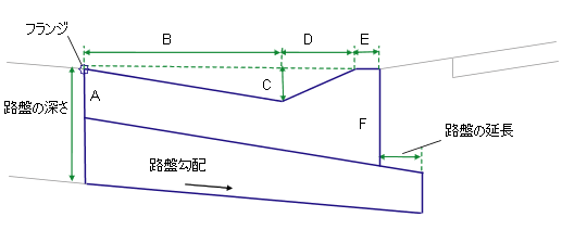 側溝のフランジ ポイントからフローラインまでの幅 |