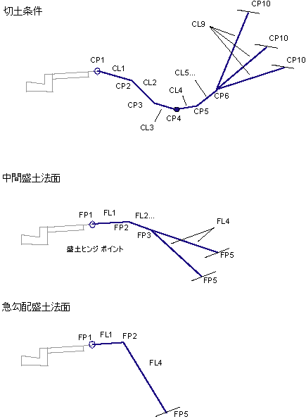 盛土交点法面のヒンジ ポイント |