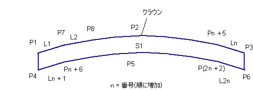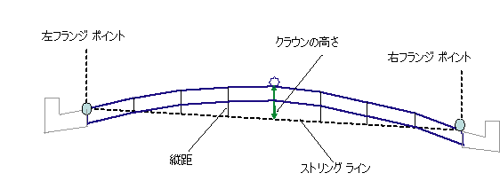 | クラウンの高さ | ストリング ラインの中心から道路のクラウンまでの高さ |