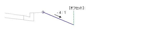 レイアウト モードの場合、指定されたオフセットまで引かれた -4 : 1 勾配のリンクを表示します。リンクの最後には、外側を向いた矢印が付きます。