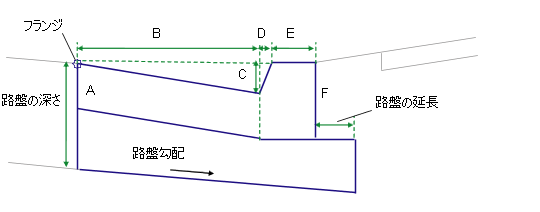 側溝のフランジ ポイントからフローラインまでの幅 |