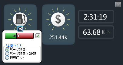 搬送コストと合計コストのインジケータに解析結果が表示されます。フラグや接続線によって、追加のフィードバックが提供されます。