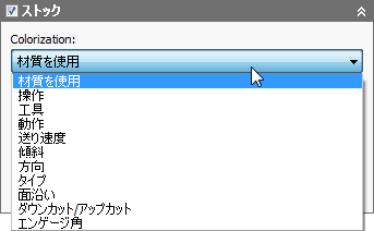 ストック シミュレーションは、切上げ/切下げ加工や切削方向など、いくつかの異なる加工基準に従って色付けすることができます。これにより、パーツを実際に加工する前に潜在的な問題を視覚化することができます。ストックの色付けにより、パーツ品質と切削性能に関連する潜在的な加工の問題の概要をすばやく的確に知ることが可能です。