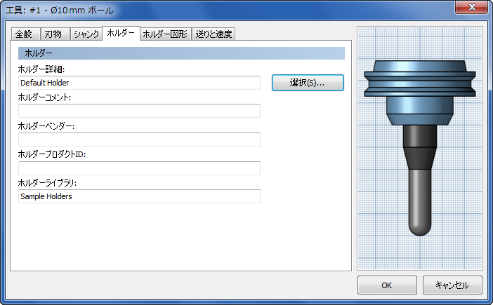 工具の説明文です。この説明は、Inventor HSM 全体に表示される工具名に含まれています。