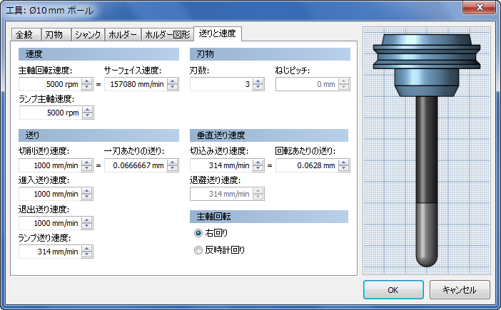 ダイアログ ボックスの右側に工具形状のプレビューが表示され、変更を反映するように自動的に更新されます。
