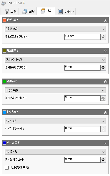 退避高さオフセットは、上にある退避高さのドロップダウン リストの選択内容を基準に適用されます。