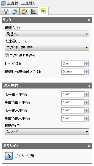 進入が進入からツールパスに移動するときに円滑化される垂直円弧の半径です。